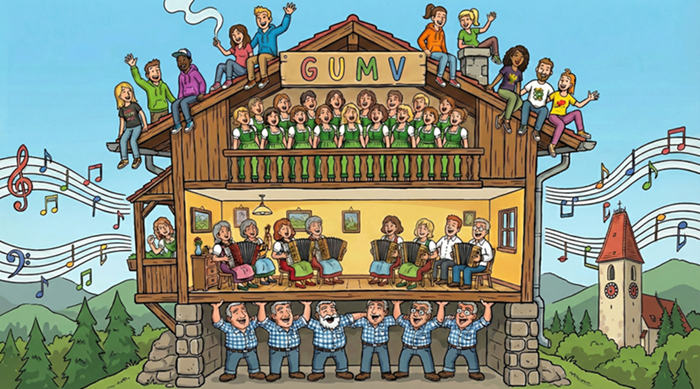Für all dies proben wir mit Ausnahme der Schulferien jeweils an Donnerstagen (Damen 19.00, Herren 20.30) in unserem Probenraum im Gasthof Kalteis.